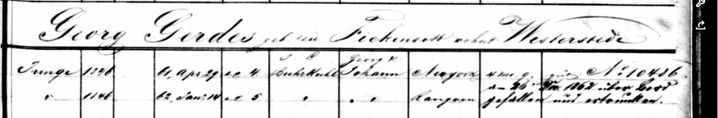 Below you see the entry of Georg Gerdes, who also sailed on the barque "Georg & Johann" of Captain J.L. Burkuhl at the time. Georg Gerdes may also have known Carl, the captain's nephew. However, what happened during that voyage is described here. The captain was lost overboard. The further course of events is completely unknown. Whether this happened during a storm or some other misfortune, or whether he died from his injuries or drowned, is also unknown.